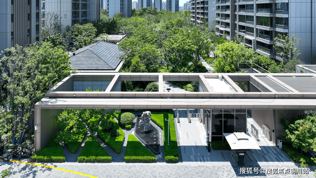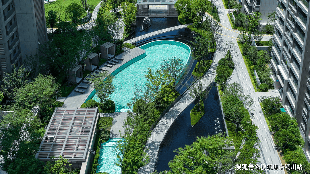 进入社区,迎面而来是潺潺水景,层叠交错,随处可见的酒店风元素搭配层次丰富的植被,置身其中,身心也随之放松。