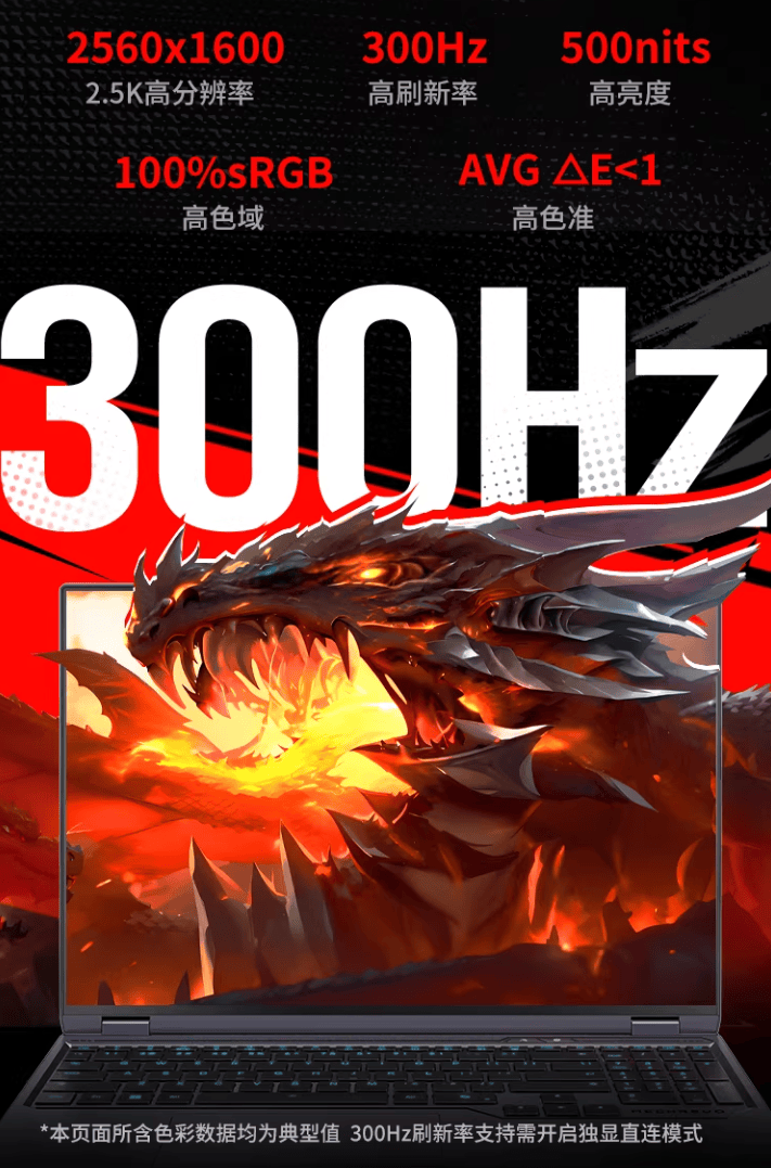 屏幕是人机交互的核心窗口,更是决定游戏体验与创作精度的关键。蛟龙16 Pro专为电竞与创作双场景深度调校,打造出一块兼顾流畅操作与专业色彩的高素质屏幕,彻底打破游戏屏与创作屏的壁垒。并且300Hz超高刷新率配合极速响应时间,彻底根除画面撕裂、拖影卡顿问题,无论是FPS游戏中的精准跟枪,还是MOBA游戏中的技能连招,每一次操作都能与画面精准同步,助你抢占赛场先机,掌控对局节奏。同时,这块屏幕覆盖100% sRGB广色域,经过专业级校色实现ΔE1的超高色准,色彩还原能力媲美专业设计显示器,修图调色、视频剪辑时真正做到“所见即所得”,无需反复校色调整,大幅提升创作效率。500nits的峰值高亮度,即便是户外强光环境,也能清晰呈现屏幕内容,无惧环境光干扰,使用场景更自由。