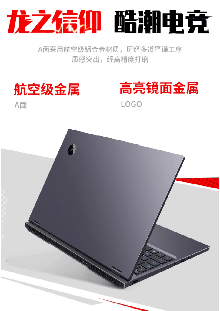 长久以来,高性能游戏本总与“厚重粗犷”的标签绑定,而蛟龙16 Pro以全新模具设计,彻底打破这一刻板印象,实现了强悍性能与精致颜值的完美融合。机身A面采用航空级金属材质,经过多道精细打磨工艺处理,触感细腻温润,质感十足。亮面镜面品牌Logo点缀其中,简约大气中尽显旗舰格调,相较于传统游戏本的夸张设计,更符合当下用户的现代审美需求。同时,全新模具在机身厚度与重量上实现了进一步优化,在容纳旗舰级硬件与强悍散热系统的同时,兼顾了机身的便携性,无论是日常通勤携带,还是外出移动办公创作,都能轻松驾驭,告别游戏本“只能放桌面”的使用局限。