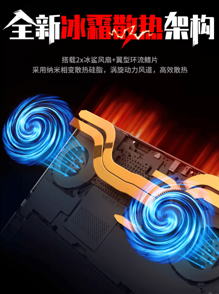 旗舰级的性能释放,离不开强悍的散热系统作为支撑。蛟龙16 Pro全面升级全新冰霜散热架构,以精密的散热设计,为双芯满血运行保驾护航。散热模组采用双冰鲨高转速风扇搭配三加粗热管设计,配合翼形环流鳍片与高导热纳米相变硅脂,构建起全链路高效散热循环。升级后的涡旋动力风道,实现风量较前代大幅提升,可快速将处理器与显卡的核心热量导出机外,杜绝热量堆积。双烤工况下,整机功耗可稳定维持在205W,锐龙R9 9955HX与GeForce RTX 5070双核心均可实现满功耗稳定运行,即便是长时间3A游戏挂机、重度渲染任务,也不会因核心过热出现降频卡顿,始终保持巅峰性能。同时,优化后的风道设计大幅降低了运行噪音,即便在高负载场景下,也能保持安静运行,无论是宿舍、办公室还是居家环境,都不会打扰他人,真正实现高性能与低噪音的双向兼顾。